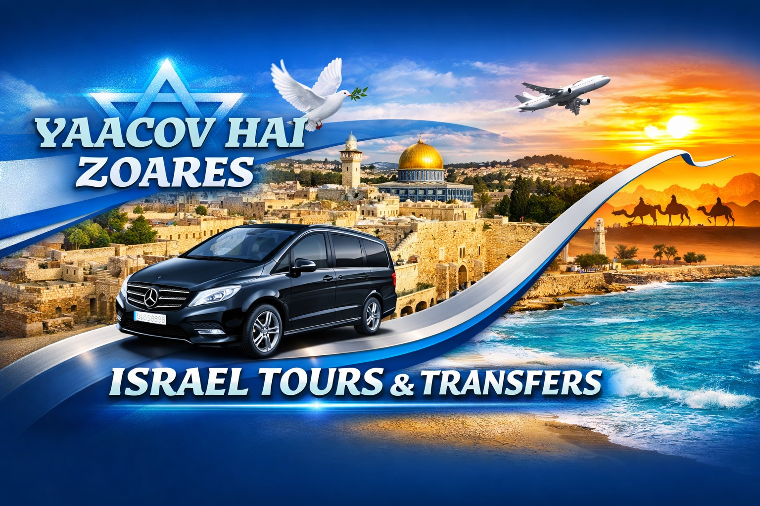 Il servizio comprende transfer da e per l’aeroporto, spostamenti privati e tour personalizzati in tutta Israele. Che si tratti di raggiungere il vostro hotel dopo l’arrivo, organizzare una giornata di visite o pianificare un itinerario di più giorni tra i luoghi più significativi della Terra Santa, Yacov sarà al vostro fianco con puntualità e professionalità.
